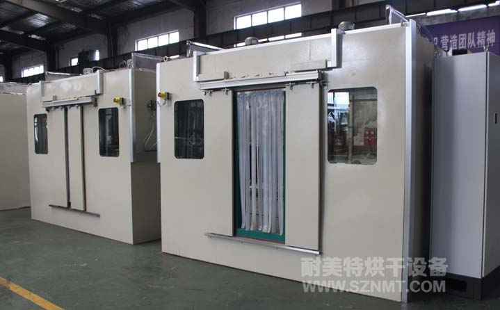 1,物流人员在加热箱后面把料车推到加热房里,关上卷帘门开始加热。