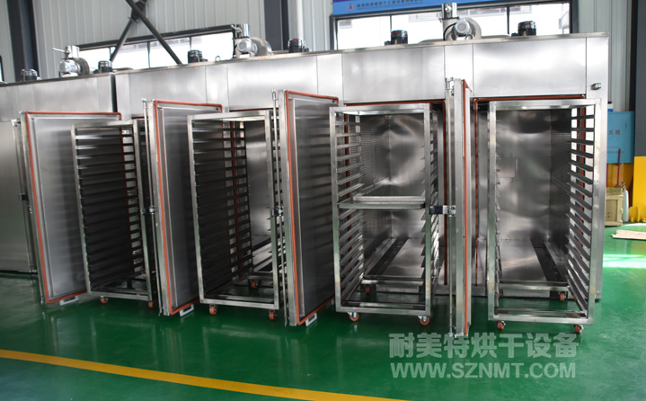 1、烘烤产品:烘箱内放置8台尺寸为W720*940*1675的推车(推车尺寸与供方原有的同尺寸),每台推车上32件托盘;