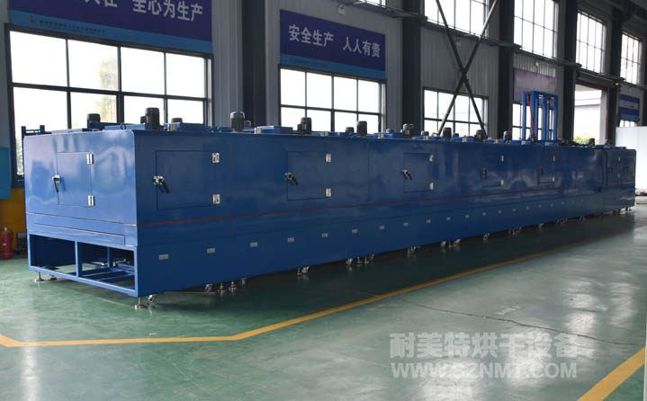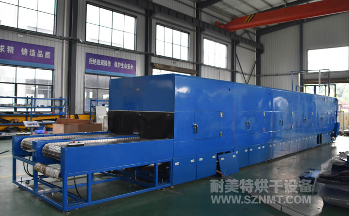 叉车轮子双通道灌胶固化炉主要技术参数 1、内胆尺寸:左右双通道,每条通道内宽700mm*内高500mm;加热区长10000mm+保温段700mm; 2、外形尺寸(约):总长12700mm*高1950mm*宽2100mm;输送带离地面高800mm±25mm; 3、总长12700mm*高1950mm*宽2100mm;输送带离地面高800mm±25mm; 4、温度范围:+55~+200℃; 5、三面循环运风,≥800立方/台风机;