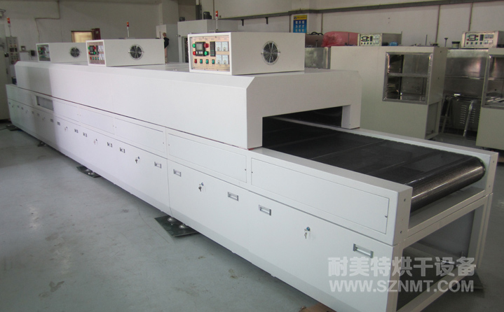 烘干炉部分外形尺寸:长8米,外宽1.17米,网带宽0.85米,总高1.27米,出料部分长1.0米,烘干部分长6米,进料部分长1.0米;