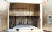 1、内胆尺寸:宽4500*高3500*深6000mm(前后分二段烘箱,单段深3000mm);