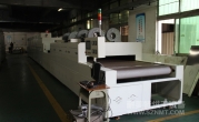 2、外形尺寸(约):总长24500mm*总高1740mm*总宽1890mm,地面到网带的高度为950-1050mm,炉体内进料高度为150mm;烘干部分总长14000mm,分7段独立控温(每段4个测温热电偶),每段2000mm。冷却段长4000mm,UV区2000mm,前后缓冲区各长500mm,进料部分长2000mm,出料部分长1500mm, 炉体前后大梁上方装有急停开关,共4个。