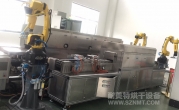 2、本生产线分为机械手移载产品至菱形线、取样与安全防护门、菱形输送线、预热炉、产品出炉温控监测及位置检测、喷硅系统、视觉检测系统、流量监测系统、NG排除机构、机械手移载至网带输送线、取样与安全防护门、网带输送线、固化炉、机械手移载至包装线、取样与安全防护门;系统分为两种生产模,硅化线和非硅化。