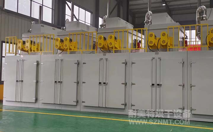 单个产品进入烘箱前91KG,烘烤后49KG,去水量42KG/个,每个烘箱放置16个产品,炉内满足8个架子每个架子上下叠加放置2个产品,架子尺寸为800*800*1750mm。