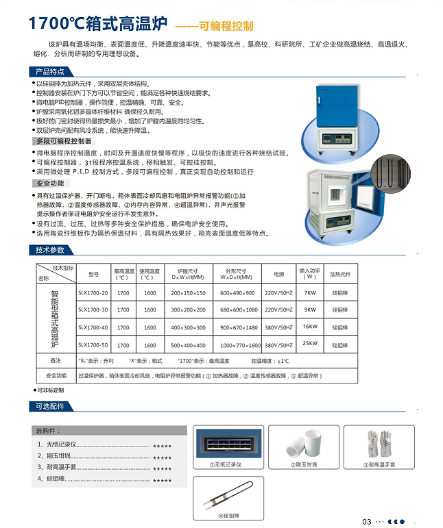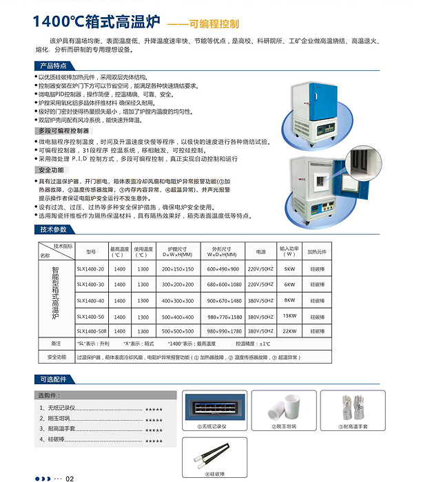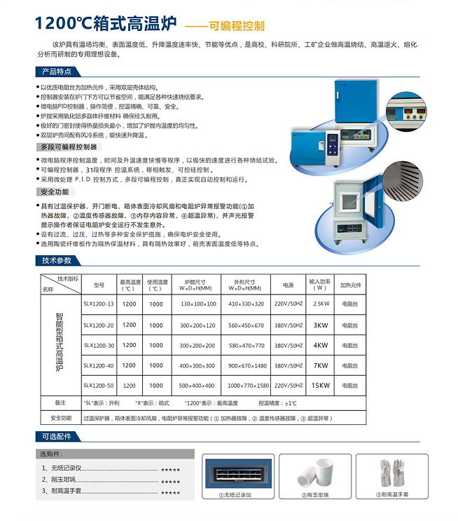 该炉具有温场均衡、表面温度低、升降温度速率快、节能等优点,是高校、科研院所、工矿企业做高温烧结、高温退火、熔化、分析而研制的专用理想设备。